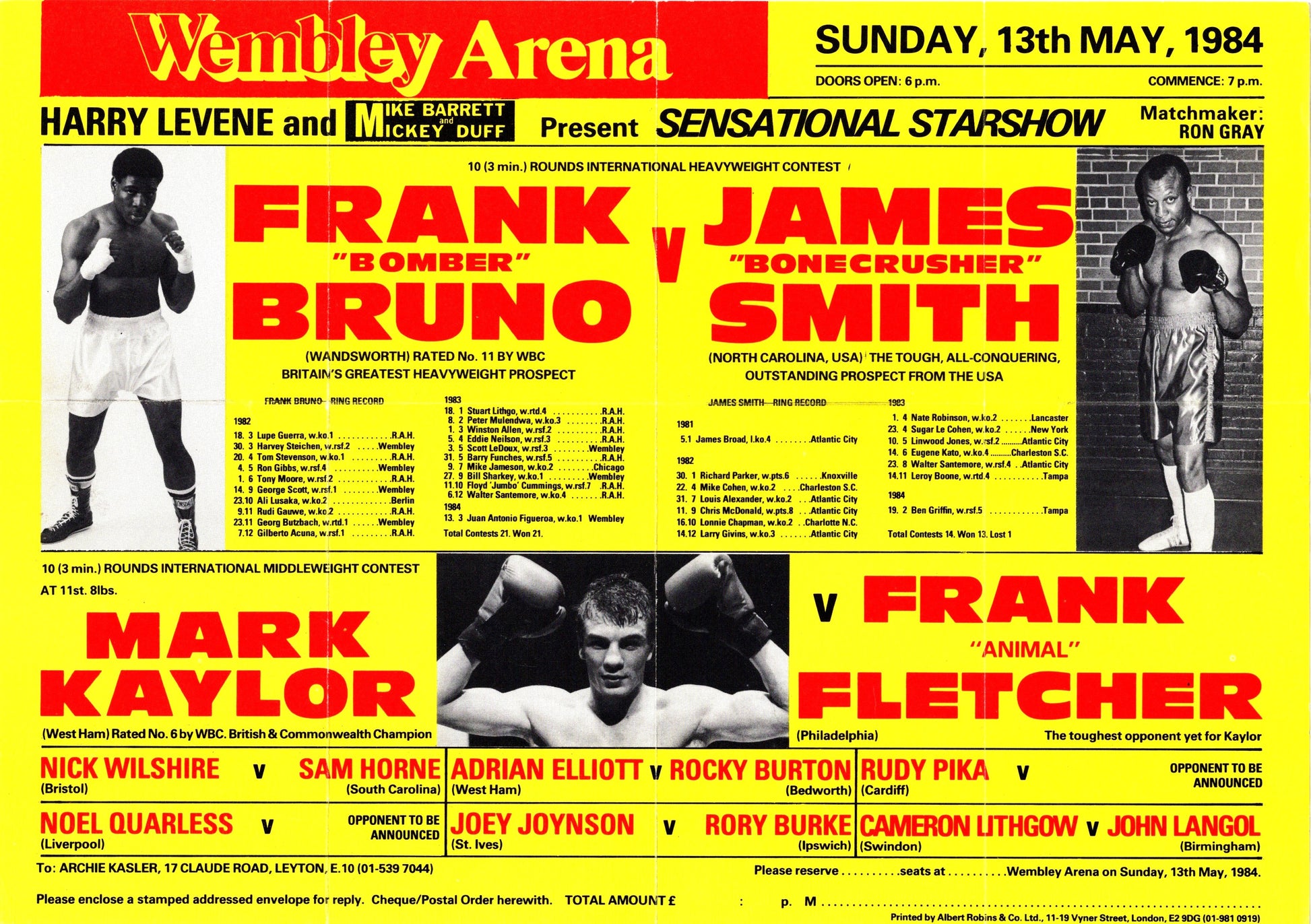 Reprint of original flyer of Frank Bruno v James Smith fight in 1984