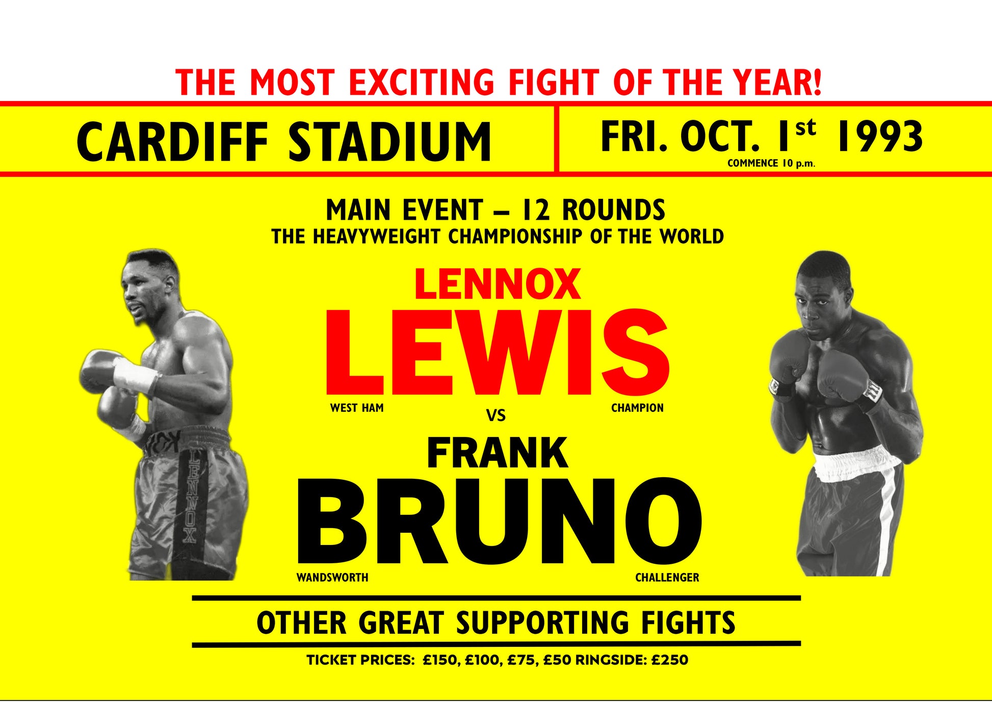1960s style inspired boxing poster of Lennox Lewis v Frank Bruno.