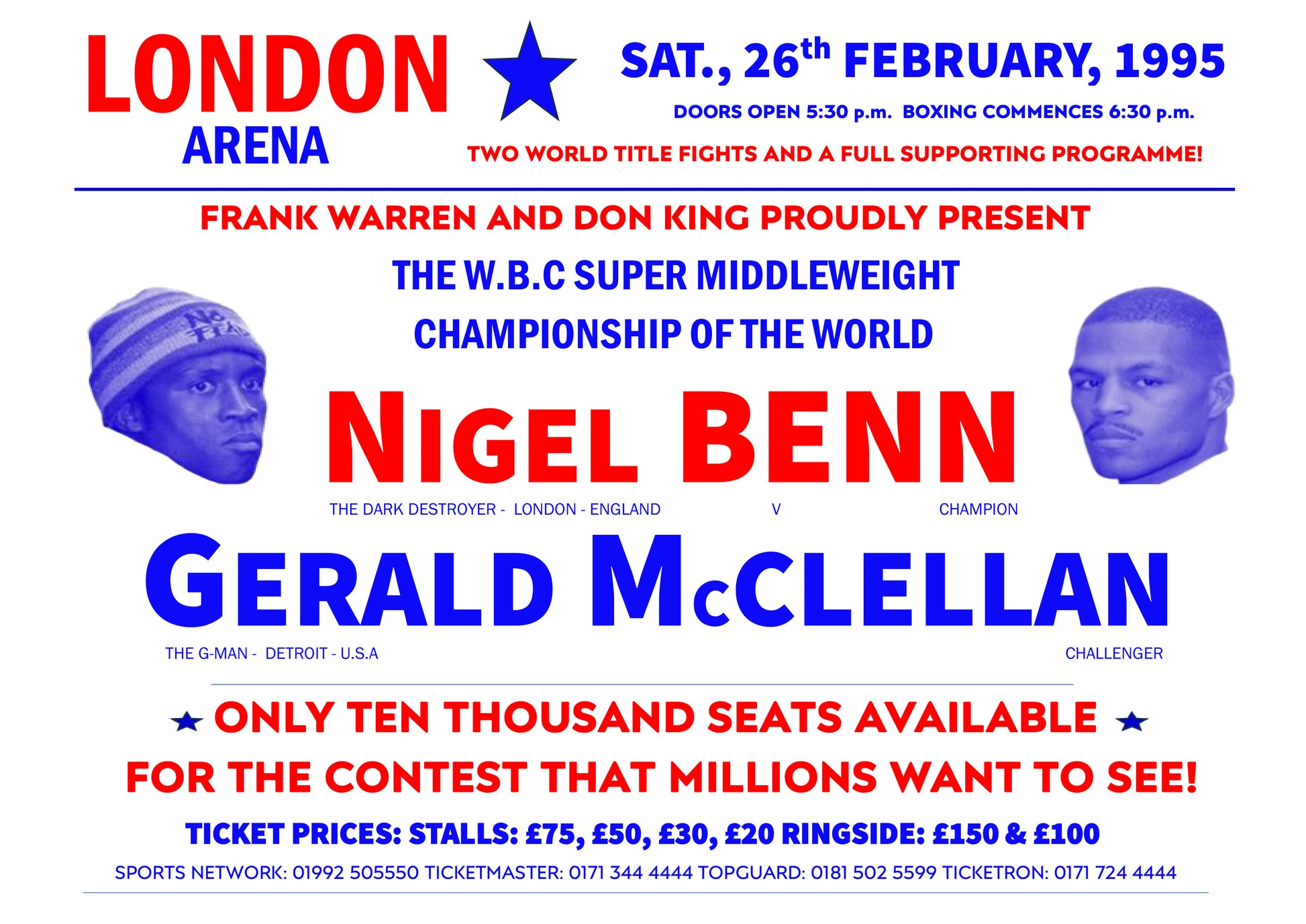 Nigel Benn v Gerald McLellan 1960s Flyer