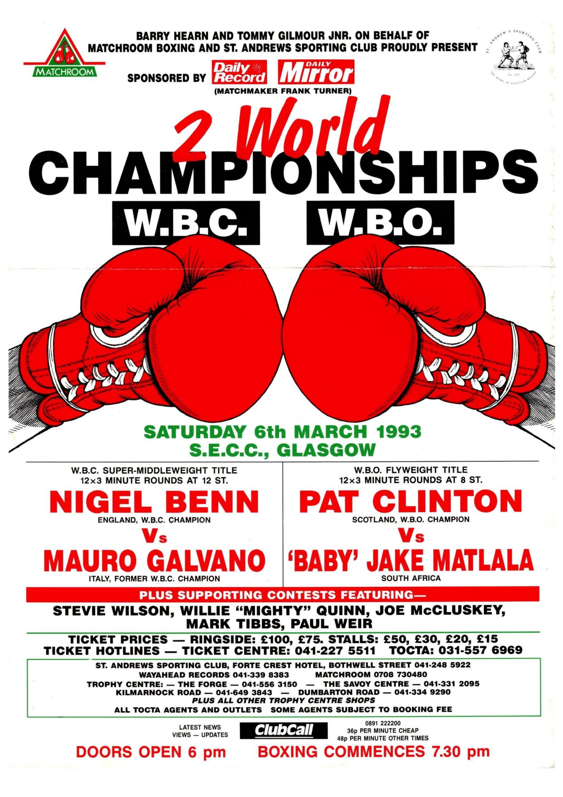Reprint of original flyer of Nigel Benn v Mauro Galvano fight in 1993