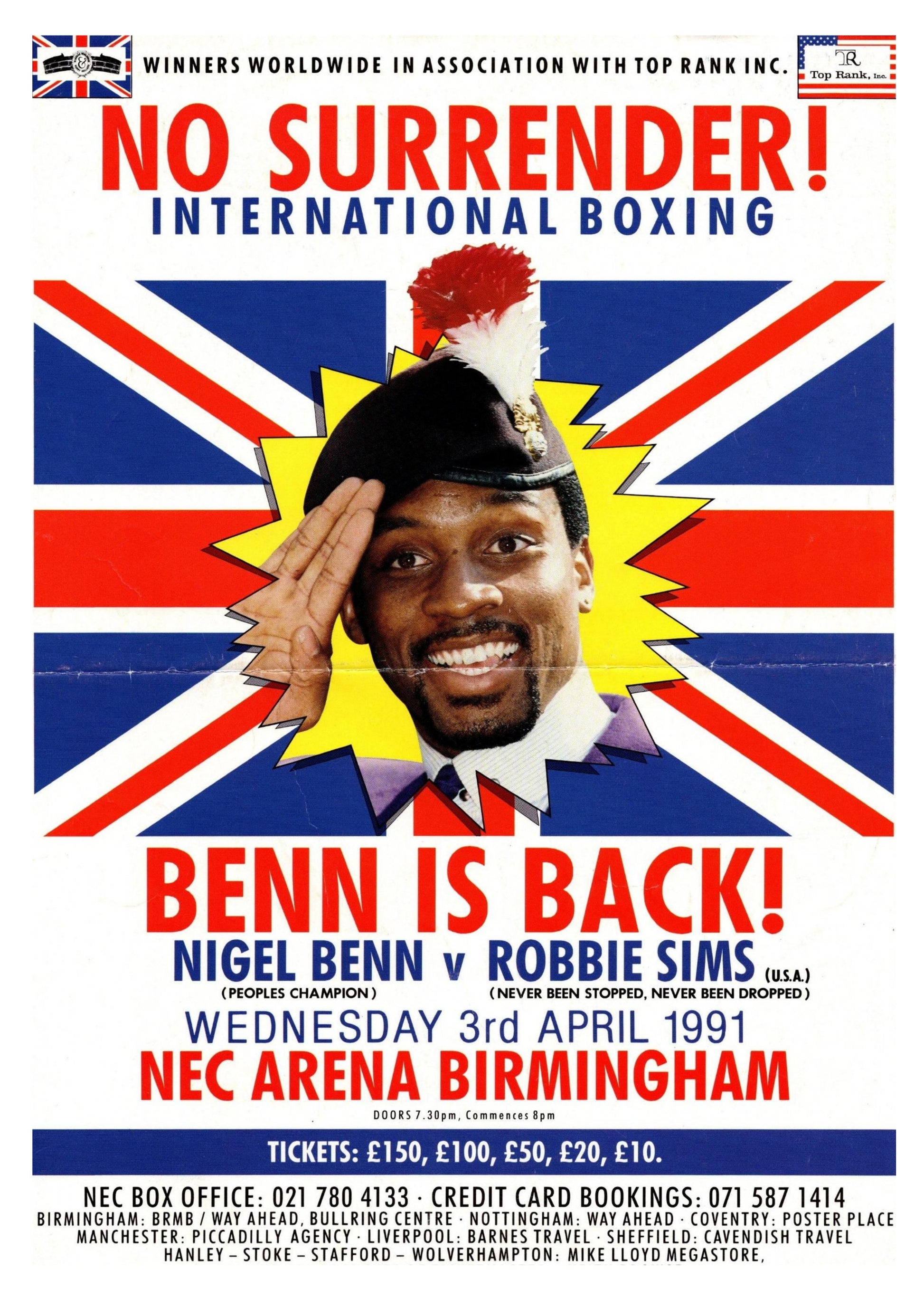 Reprint of original flyer of Nigel Benn v Robbie Simms fight in 1991